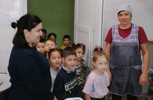 Туган телләр һәм халыклар бердәмлеге елы кысаларында бакчабызда һәрдаим максатчан экскурсияләр оештырыл килә. Бүген мәктәпкә әзерлек төркеме балалары өлкәннәр хезмәте белән танышу максаты белән бакча ашханәсендә экскурсиядә булдылар. Экскурсиянен бурычлары: балаларда өлкәннәр хезмәтенә ихтирам тәрбияләү; көндәлек туклану режимы турында төшенчә бирү, һәр төр ашка туры килүче ризыклар, аларның сәламәтлеккә тәэсирен ачыклау, логик фикерләү сәләтен үстерү; өйрәнелгән сүзләрне сөйләмдә кулланылышын активлаштыру, гомумиләштерүче сүзләрнең мәгънәсен аңларга өйрәтү. Экскурсия ахырында балалар пешекчеләр безгә нинди ризыклар пешерә, ризыклар пешергәндә пешекчеләр нинди савыт- сабалар кулланалар, нәрсә ул дөрес туклану кебек сорауларга җавап бирделәр. Төркемгә кергәч тәрбияче апалары балаларны табын артында утыру кагыйдәләре белән таныштырды.