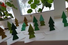 В старшей группе прошле занятие по аппликации на тему "Ёлочка- красавица". Цели занятия: формировать навыки работы с ножницами и интерес к работе, желание сделать её аккуратно; развивать у дошкольников мыслительные операции и умение действовать в соответствии с поставленными задачами педагога, развивать мелкую моторику, координацию рук, а так же воспитывать умение доводить начатое до конца, радоваться полученному результату.