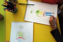 В подготовительной группе занятие по рисование на тему: "Кукла в национальном костюме". Цели: познакомить детей с русским национальным костюмом; изображать силуэт куклы в народном костюме; учить детей создавать оригинальную композицию орнамента, украшая узорную полосу впереди сарафана и на подоле; развивать чувство композиции, ритма при изображении орнамента; упражнять в расположении элементов орнамента на ограниченной плоскости листа; упражнять в технике работы кистью: кончиком ворса, плашмя; формировать эстетический вкус, развивать творческое воображение.
