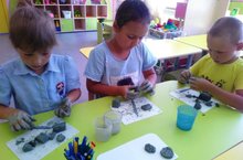 "Экспериментлар" тематик атнасы кысаларында мәктәпкә әзерлек төркеме балалары балчык һәм аның үзенчәлекләре белән таныштылар. Балчыктан искиткеч матур балчык уенчыклары да ясап булганын белделәр. Балалар, үзләштерелгән әвәләп ясау алымнарын кулланып, таныш әйберләрне әвәләп ясау күнекмәләрен ныгыттылар, иҗади сәләтләрен үстерделәр.