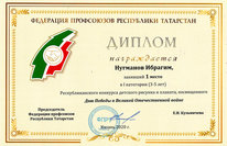 Воспитанник средней группы МБДОУ "Кояшкай" Ибрагим Нугманов награжден Дипломом 1 степени Федерации профсоюзов Республики Татарстан за победу в республиканском конкурсе детского рисунка и плаката, посвященном Дню Победы в Великой Отечественной войне.