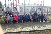 Мөслим "Кояшкай" балалар бакчасы педагоглары балаларга рухи-әхлакый тәрбия бирү эшен план нигезендә алып баралар. Педагоглар районыбызның хезмәт алдынгылары белән таныштыру йөзеннән Мөслимнең үзәгендә урнашкан "Хезмәткә-дан" аллеясенә балаларны алып килделәр.