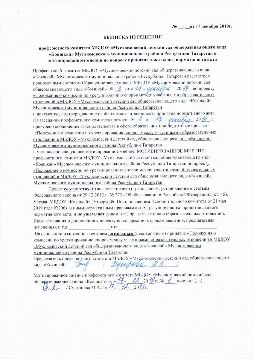 Выписка из решения профсоюзного комитета