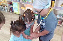 Уртанчылар төркеме балалары табиб һөнәре белән таныштылар. Сәламәт яшәү өчен нинди тәлапларне үтәргә кирәклеге турында кабатладылар. Балалар үзләрен да шул һөнәрдә сынап сюжетлы-рольле уен үткәрделәр.