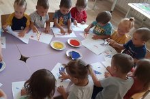 Вак кул моторикасын үстерү максатында беренче кечкенәләр төркеме балалары гуашь ярдәмендә бармак белән рәсем ясадылар.