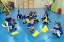 Беренче кечкенәләр төркемендә физик тәрбия эшчәнлеге. Балалар белән тезелеп басарга, исәнләшергә, берсе артыннан берсе тезелеп барырга, чүгәләргә өйрәнәбез.