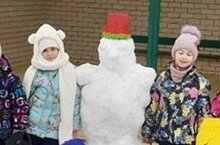С детьми подготовительной к школе группы слепили Снеговика, вспомнили методы лепки из снега.