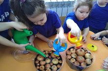 Зурлар төркеме балалары үзләре утырткан суганнарга су сибәләр, үскәннәрен күзәтәләр.