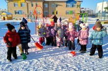 Уртанчылар төркеме балаларын саф һавада булганда хезмәт тәрбиясенә өйрәтү максатыннан бергәләп уен мәйданчыгын кардан арындырдык. В целях трудового воспитания вместе с детьми средней группы очистили игровые сооружения от снега.