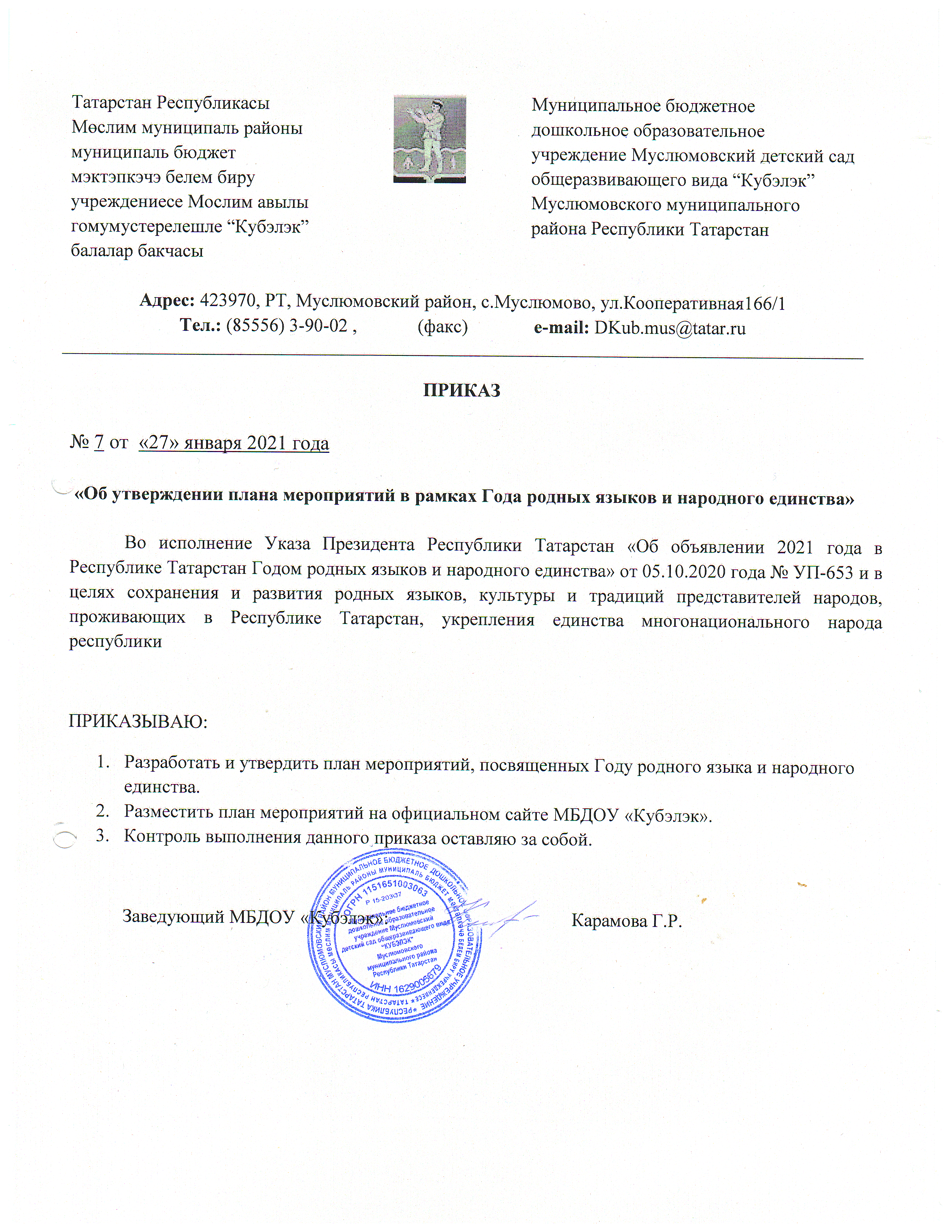 МБДОУ Муслюмовский детский сад общеразвивающего вида "Кубэлэк" Муслюмовского муниципального района РТ