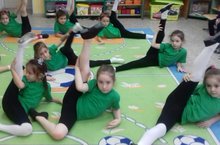 “Ләйсән” балалар бакчасының мәктәпкә әзерлек төркемендәге балалар гимнастик күнегүләр ясыйлар. Бакчада балаларның физик үсешенә зур урын бирелә.