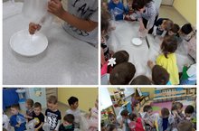 Дети средней группы детского сада «Ляйсан» усердно познают окружающую среду. Они хотят узнать мир с помощью запахов, разделения предметов на части. Это непрекращающееся познание: во время игр, экскурсий, разговоров, труда. Конечно, нет ничего лучше, чем эксперимент.