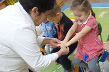 Беренче кечкенәләр төркемендә психолог төрле үстерешле уеннар аша балаларның санау, төркемнәргә бүлү, һ.б. күнекмәләрен камилләштерде. Бу уеннарны уйнау бик яхшы нәтиҗә бирә һәм бер-берең белән җиңел аралашуга зур ярдәм итә.