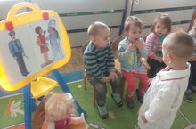Беренче кечкенәләр төркемендәге балаларны шәһәрдә яшәүче кешеләрнең һөнәрләре (табиб,полиция хезмәткәрләре) белән таныштыру һәм аларгә карата кызыксыну тәрбияләү максатыннан сюжетлы уеннар уйнатылды.