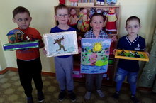 В старшей группе были проведены конкурсы, посвященные «130-летию Г.Тукая» и «Дню Победы». Дети совместно с родителями сделали поделки и рисунки. По итогам конкурсов ребята были награждены грамотами и дипломами. Самые лучшие работы были отправлены на конкурс «Зирәк-бала-X» в журнал «Мәгариф» и дети получили дипломы лауреатов.