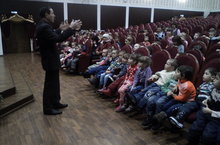 Ребята старшей группы в сопровождении воспитателей сходили на просмотр мультфильма «Тарзан» в РДК. Детям очень понравился сюжет мультфильма, через который им прививались любовь к животным и к окружающей природе.