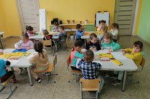 Мөслим районы “Ләйсән” балалар бакчасы. “Туган телләр һәм халыклар бердәмлеге елы” кысаларында икенче кечкенәләр төркемендә кисеп ябештерү эшчәнлеге. Балалар үз куллары белән матур итеп ябештеререгә өйрәнәләр.