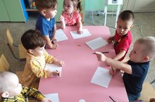 Кече яшьтәге балалар өчен рәсем ясау белән шөгыльләнү, белем бирү процессының нигезен тәшкил итә. 2-3 яшьтә балаларда сынлы сәнгать ярдәмендә психик процессларның, аерым алганда, фикерләү һәм кабул итү процессларының актив үсеше бара. Кечкенәләр төркемендәге балалар рәсем ясарга бик яраталар, бигрәк тә гуашь, якты буяулар белән. Бүген нәниләр тәрбияче белән яңгыр тамчысы ясап карадылар. Барысы да бик тырышты. Рәсемнәр бик яхшы килеп чыкты!