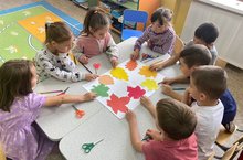 В МБДОУ" Ляйсан", в рамках "Года родного языка и нородного единства", дети подготовительной группы познают окружающей мир через различные игры. Вырезанные из цветной бумаги различные листья, отличное решение для украшения группы.