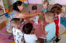 В МБДОУ “Ляйсан” дети второй младшей группы познакомились с кукольным театром и сами инсценировали русскую народную сказку “Репка”. При инсценировке сказки дети испытали себя и обрели духовное богатство. В процессе игры у детей укрепляется нравственное воспитание, прививается любовь к народному творчеству и любовь к родному языку.