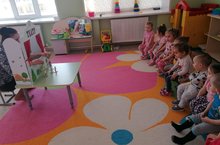 Мөслим районы "Ләйсән" балалар бакчасының уртанчылар төркеме балалары бүген театр дөньясы белән таныштылар.Театр балаларга бер-берсе белән аралашырга булыша, суз байлыгын арттыра, балаларнын фантазиясен, уй-фикерләрен баета.