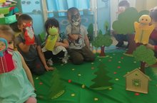 В МБДОУ "Ляйсан", в рамках "Года родного языка и нородного единства", в старшей группе был организован театральный уголок. Дети знакомятся с разными сказками и сами ставят представления.