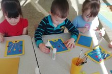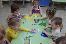 Мөсим "Ләйсән" балалар бакчасының уртанчылар төркеме ябыштыру алымын кулланып, уз куллары белән открытка ясарга өйрәнде. Төп максат: баланың хәтерен, уй фикерләвен баету, кул моторикасын үстерү. 23 февраль Ватанны саклаучылар көнен билгеләп үтү.