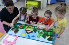 Өстәл театры һәм бармак белән уеннар баланың баш миен үстерә, сөйләм үсешен, иҗади сәләтләрен, сабыйның фантазиясен стимуллаштыра. Бакчабызның зурлар төркеме балалары көндә кечкенә генә спектакльләр, күренешләр, әкиятләр уйныйлар.
