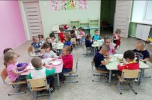 " Ләйсән" балалар бакчасындагы беренче кечкенәләр төркеме балалары иртәнге ашта. Балаларга культура , гигиена күнекмәләрен бирү.