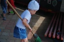 " Ләйсән" балалар бакчасында хезмәткә карата кызыксыну уяту кече яшьтән үк башлана. Икенче кечкенәләр төркем балалары һәрдаим тәрбияче апарына ярдәм итәргә омтылалар. Бүлмәне тәртипкә китерү, мәйданчыкта чүпләрне җыю, җәйге веранданы себереп кую кебек эшләрне сабыйлар бик теләп башкаралар.В детском саду " Ляйсан" дети второй младшой группы с большим удовольствием помагают своим воспитателям. Детям очень нравится убирать комнату и детскую площадку. -