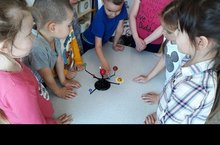 В честь дня космонавтики в подготовительной группе МБДОУ " Ляйсан" провели беседу на тему " Великие космонавты". Дети собрали конструктор и узнали где находятся планеты. Из цветной бумаги вырезали ракеты и пускали их возле планет.