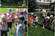 “Ләйсән” балалар бакчасының икенче кечкенәләр төркеме балалары тәрбияче апалары белән бергә чәчәкләрне карыйлар: су сибәләр, җирне йомшарталар, чәчәкләрнең исемнәрен истә калдырырга тырышалар.