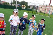 В МБДОУ "Миляшкай" прошел праздник мыльных пузырей. Все детишки утром принесли свою баночку с мыльными пузырями и с нетерпением ждали, когда же начнется праздник. Проходили соревнования: у кого получится самый большой пузырь и самый маленький пузырь и самый маленький, кто дальше дунет свои пузыри, кто выше и т.п. Праздник получился весёлый, забавный, энергичный, активный. Дети получили массу удовольствий. "Миләшкәй" балалар бакчасында "Сабын куыклары коне" булды. балалар үзләренең кубекләрең алып килделәр. Аларга куп төрле ярышлар үткәрелде:"Иң зур һәм кечкенә күбекләр", "Кем ераккарак", "Биекәрәк очырта".Бәйрәм бик күңелле үтте.