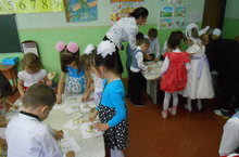 Чернова Рәмзия Мирзагалиевна зурлар төркеме балалары белән бакча тәрбиячеләренә хәзерге көндә балаларга тәрбия-белем бирү эшендә актуаль булган, Федераль дәүләт белем бирү стандартлары таләпләренә туры килгән белем бирү эшчәнлеге күрсәтте. Эшчәнлектә балалар Г. Тукай белән рус язучысы А.С. Пушкин белән таныштылар. Балалар өчен язылган татар, рус әкиятләрен өйрәнделәр. Эшчәнлек бәйләнешле алып барылды. Балалар А.С.Пушкинның "Алтын балык" әкияте белән танышканнан соң, "Гади балык" ясап, аны махсус сары ялтырыйклар сибеп "Алтын балык" ка әверелдерделәр. Темага туры китереп " Су буенда" дигән хороводлы уен оештырылды. Азактан балалар үзләре ясаган "Алтын балык" тан үзләренең теләгән әйберләрен сораулары, балалар өчен дә, тәрбиячеләргә дә кызыклы булды. Тәрбияченең эшчәнлектә ИКТ куллану,ы, аның алган максатының үтәлешенә зур этәргеч булды.