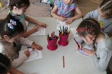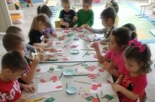 Уртанчылар төркемендә кисеп ябыштыру эшчәнлеге. Чәчәкнең өлешләрен кисеп берләштереп чәчәк ясарга өйрәнделәр. Кайчы белән эшләү күнекмәсен ныгыттылар.