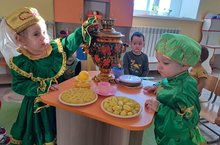 Балалар әтиләр бәйрәменә әзерләнәләр. Матур җыр, биюләр өйрәнәләр.