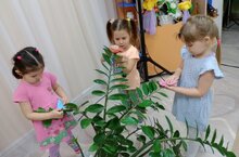Хезмәт тәрбиясе. Балалар бүлмә гөлләренең тузаннарын сөртәләр. Бүлмә гөлләрен тәрбияләргә өйрәнәләр. Кеше өчен бүлмә гөлләренең әһәмиятенә төшенәләр.