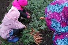 Трудовое воспитание в экспериментальном участке. Дети старшей группы собрали урожай. -