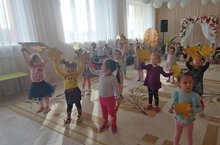 Кечкенэлэр төркемендә музыка эшчәнлеге. Балалар көз турында матур бию өйрәнәләр.
