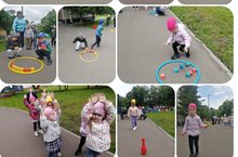 С ребятами из средней группы провели соревнования по спортивным играм на свежем воздухе. Ребята совершенствовали свою ловкость, старательность.