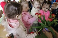 Дети младшей группы познакомились с тюльпанами.