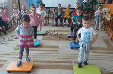 В нашем детском саду реализуется степ-аэробика.Она обладает рядом достоинств и в целом оказывает положительное влияние на детский организм. Регулярное занятия степ-аэробикой позволяет укрепить сердечно-сосудистую, дыхательную, нервную и мышечную систему/ -