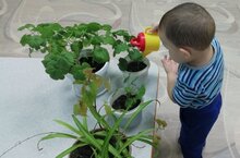 Элементарные навыки труда мы начинаем закладывать в детях с младшей группы. Дети учатся ухаживать за комнатными растениями и вместе с тем познают мир растений.