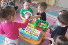 Воспитание интереса к профессии продавца. Укрепление дружеских отношений, правил поведения в общественных местах. Обогащать представления детей о профессии продавца и назначении необходимого инвентаря (касса, деньги, корзинка, продукты). Учить детей выполнять игровые действия в соответствии с сюжетом игры.