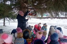 Язнын беренче көнендэ, кошларның азык табуларын кайгырту йөзеннэн, балалар белән җимлек элдек, жимлеккә тары ярмалары, көнбагышлар, ипи валчыклары салдык. Балаларның кошлар турындагы белемнәрен киңәйттек, аларга карата мәрхәмәтлелек, шәфкатьлелек хисләре тәрбияләдек.