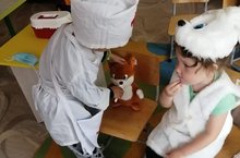 В нашем детском саду дети очень любят играть в сюжетно-ролевые игры. Для игры в эти игры в нашем саду есть все необходимые игрушки. С особой любовью дети играют в сюжетно-ролевую игру "Поликлиника". Они "лечат" игрушечных зверей и кукол. С помощью игрушечных медицинских устройств осматривают "больных", измеряют температуру, делают уколы. Через эту игру дети понимают, что не стоит бояться идти к врачу.
