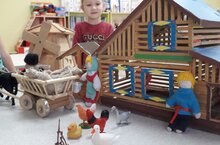 Мөслим “Миләшкәй” балалар бакчасында “Туган телләр һәм милләтләр бердәмлеге елы” кысаларында уртанчылар төркемендә шәүлә театры уйнадыр. Шәүлә театры сөйләм телен, хәтерне, күзаллауны, фантазияне үстерегә булышы. Аралашу культурасы, ихтияр көче тәрбияли. Кул моторикасын ныгыта.