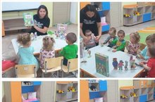 Беренче кечкенәләр төркем балалары йөк машинасы белән танштылар. Кунакка куян килде һәм балаларны уйнатты, җырлатты, биетте. Балалар КамАЗ машинасын һәм аның өлешләрен танырга, исемен әйтергә өйрәнделәр. Шөгыль бик кызыклы булды. Балалар шат булып калдылар. / Дети первой младшей группы познакомились с грузовиком. В гости пришел заяц. Он с детьми играл, пел, танцевал. Дети научились распознавать машину КамАЗ и ее части. Занятие было очень интересным. Дети остались довольны.