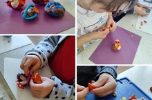 Мәктәпкә әзерлек төркеме балалары пластилиннан кәрзин белән гөмбә ясадылар. Пластилин белән уйнау вак моторикага, фикерләүгә уңай тәэсир итә. Шулай ук ул балаларнын күз һәм кул координациясен, күзаллавын үстерә. Тынычландыру функциясен башкара.