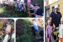 Зурлар төркеме балалары тәҗрибә участогында көзге эшләрне башкардылар: коелган яфракларны җыйдылар,кишерләрне казып алып ашханәгә тапшырдылар. -